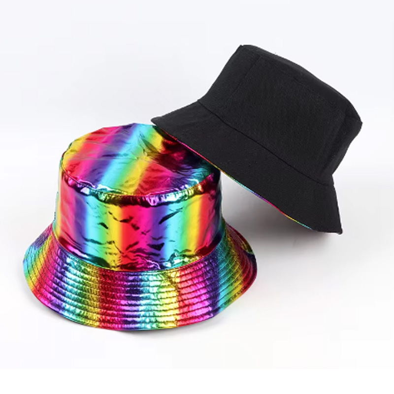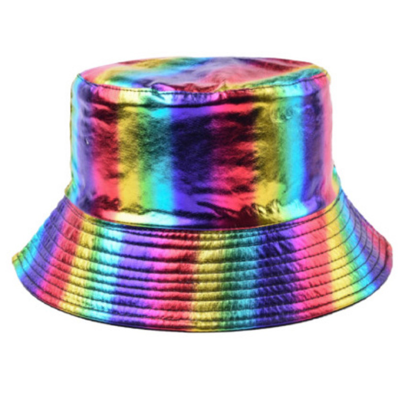 Dieser reversible glänzende Regenbogen-Bucket Hat ist ein echter Hingucker, der dein Festival-Outfit perfekt abrundet! Dieser vielseitige Hut ist in einer auffälligen Regenbogenfarbe gehalten und hat ein glänzendes Finish, das im Licht strahlt. Der Bucket Hat besteht aus hochwertigem Polyester und bietet eine bequeme Passform. Mit seinem umkehrbaren Design kannst du zwischen der bunten Regenbogenseite oder einer stilvollen, neutralen schwarzen Innenseite wählen. Ob du auffallen oder deinen Look dezent halten möchtest, dieser Hut passt sich mühelos deinem Stil an. Dank des One-Size-Designs ist er für die meisten Kopfformen und -größen geeignet. Ob es ein sonniger Tag ist oder du dich vor einem leichten Regenschauer schützen möchtest, dieser glänzende reversible Bucket Hat ist die perfekte Ergänzung für deine Garderobe!