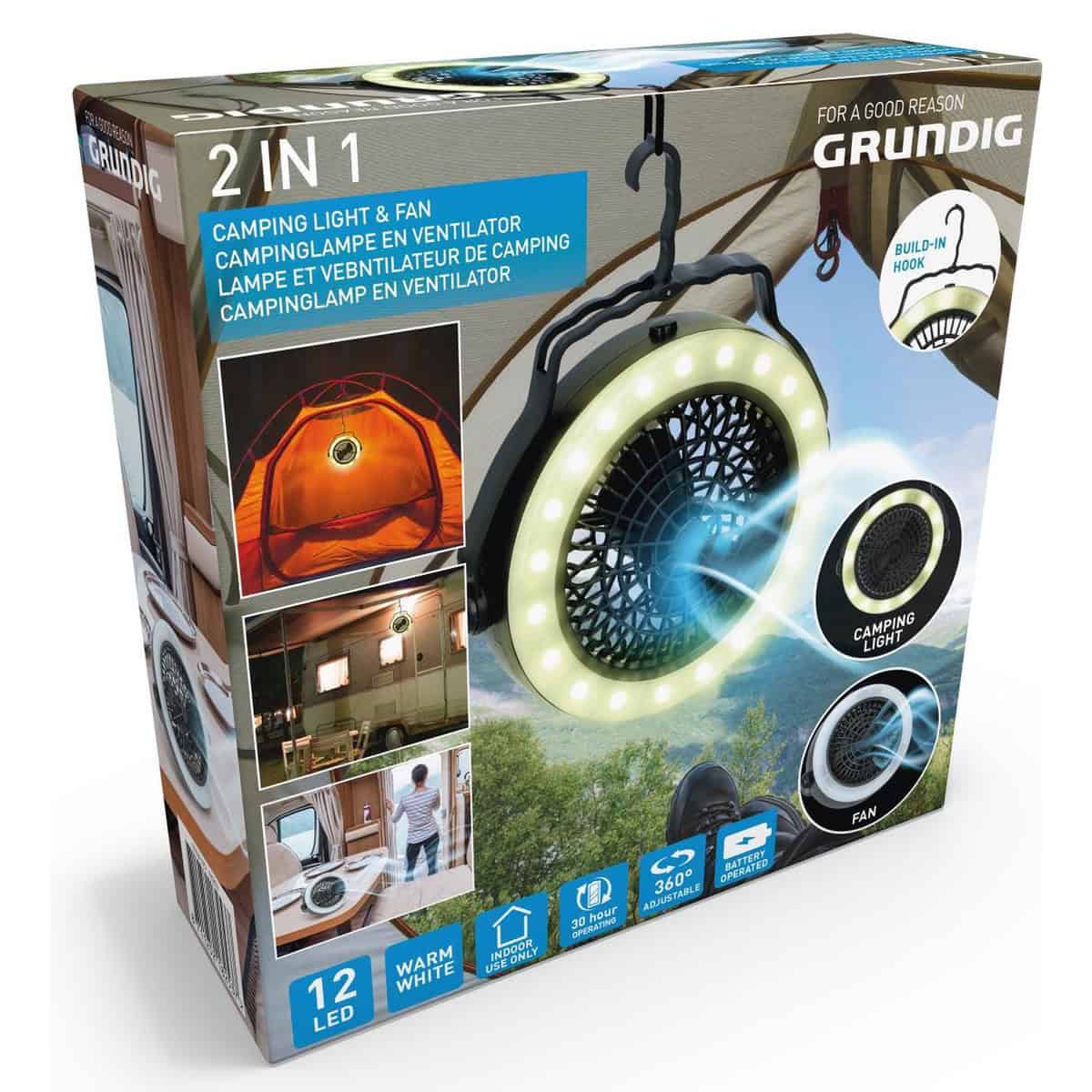 Wirst du bald campen gehen oder hast du ein Festival mit Camping geplant? Dann darf diese praktische Zeltlampe nicht in deinem Campinggepäck fehlen! Es handelt sich hierbei nicht nur um eine Zeltlampe, sondern um eine Lampe und einen Ventilator in einem Gerät. Sie sorgt also für Beleuchtung und Kühlung in oder um dein Zelt herum. Du kannst sie in deinem Zelt, Wohnwagen oder Wohnmobil oder draußen im Vorzelt oder unter einem Partyzelt für etwas zusätzliche Kühlung oder Beleuchtung verwenden. Im Ring um den Ventilator herum sind 12 LED-Leuchten mit warmweißem Licht, die bis zu maximal 30 Stunden leuchten können. Der Ventilator hat 2 verschiedene Kühleinstellungen. Die Lampe ist um 360 Grad einstellbar und kann mit dem Ständer aufgestellt, aber auch dank der integrierten Aufhängevorrichtung leicht aufgehängt werden. So kannst du sie in deinem Zelt oder Vorzelt aufhängen. Die Zeltlampe hat einen Durchmesser von 19,5 cm und funktioniert mit 3 AA-Batterien (nicht im Lieferumfang enthalten). Diese praktische 2-in-1 Zeltlampe und Ventilator ist unverzichtbar für deinen nächsten Campingausflug!