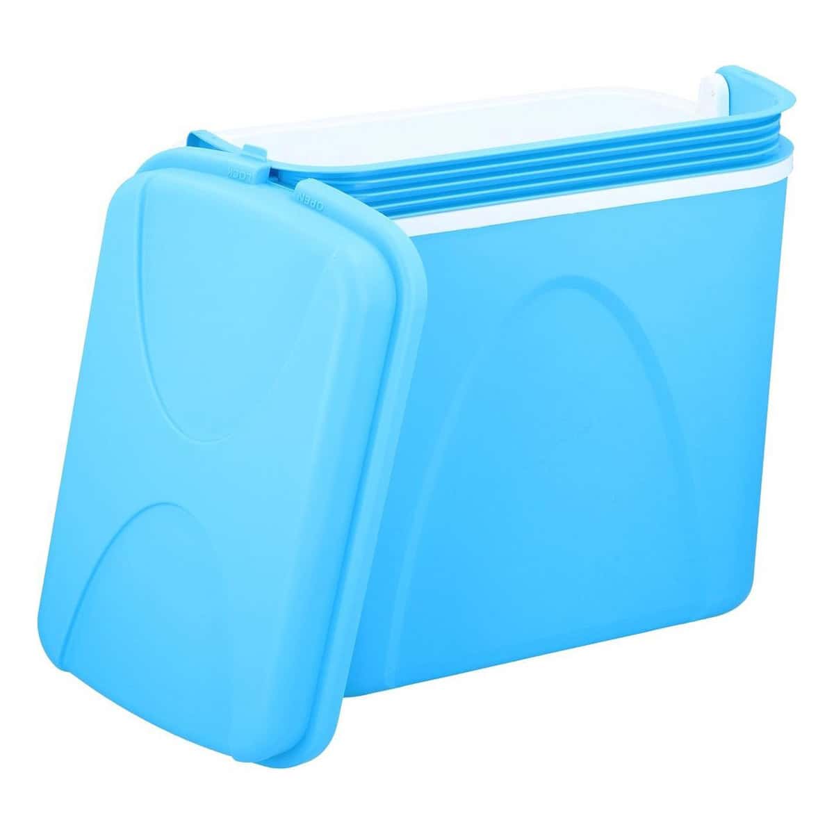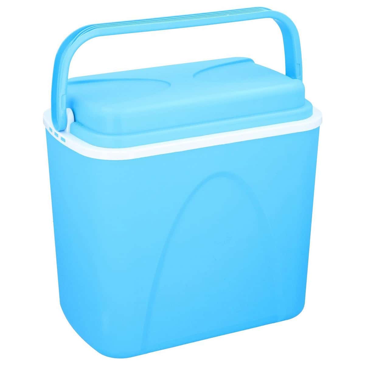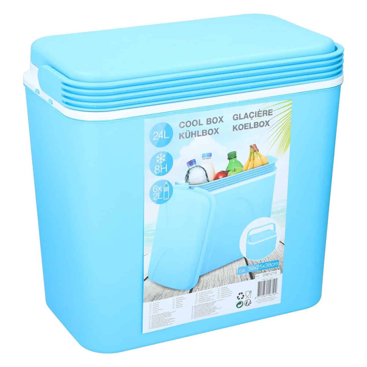 In dieser Kühlbox kannst du deine Speisen und Getränke den ganzen Tag über kühl halten! Diese praktische Kühlbox hat ein Fassungsvermögen von 24 Litern und mit Hilfe von Kühlelementen (nicht enthalten) bleibt der Inhalt bis zu 8 Stunden lang schön kühl. In der Kühlbox ist dank ihrer großzügigen Abmessungen von 39 x 25 x 38 cm (L x B x H) ausreichend Platz für 6 Flaschen à 2 Liter. Du kannst die Kühlbox einfach überall mit hinnehmen, indem du sie am praktischen Griff trägst. Nimm sie mit auf Reisen, zum Camping, zu einem Picknick oder mit auf das Festivalgelände. So kannst du immer kalte Getränke und Speisen genießen!