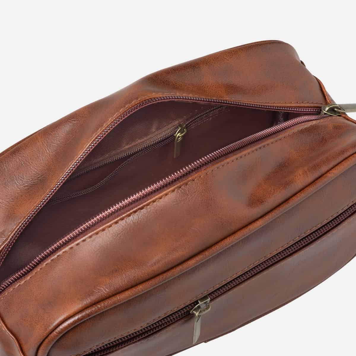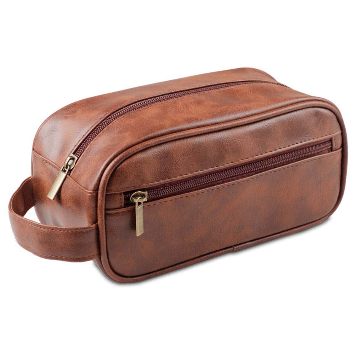 Luxus Yucka PU Leder Herrenkulturbeutel mit Haken – Hellbraun