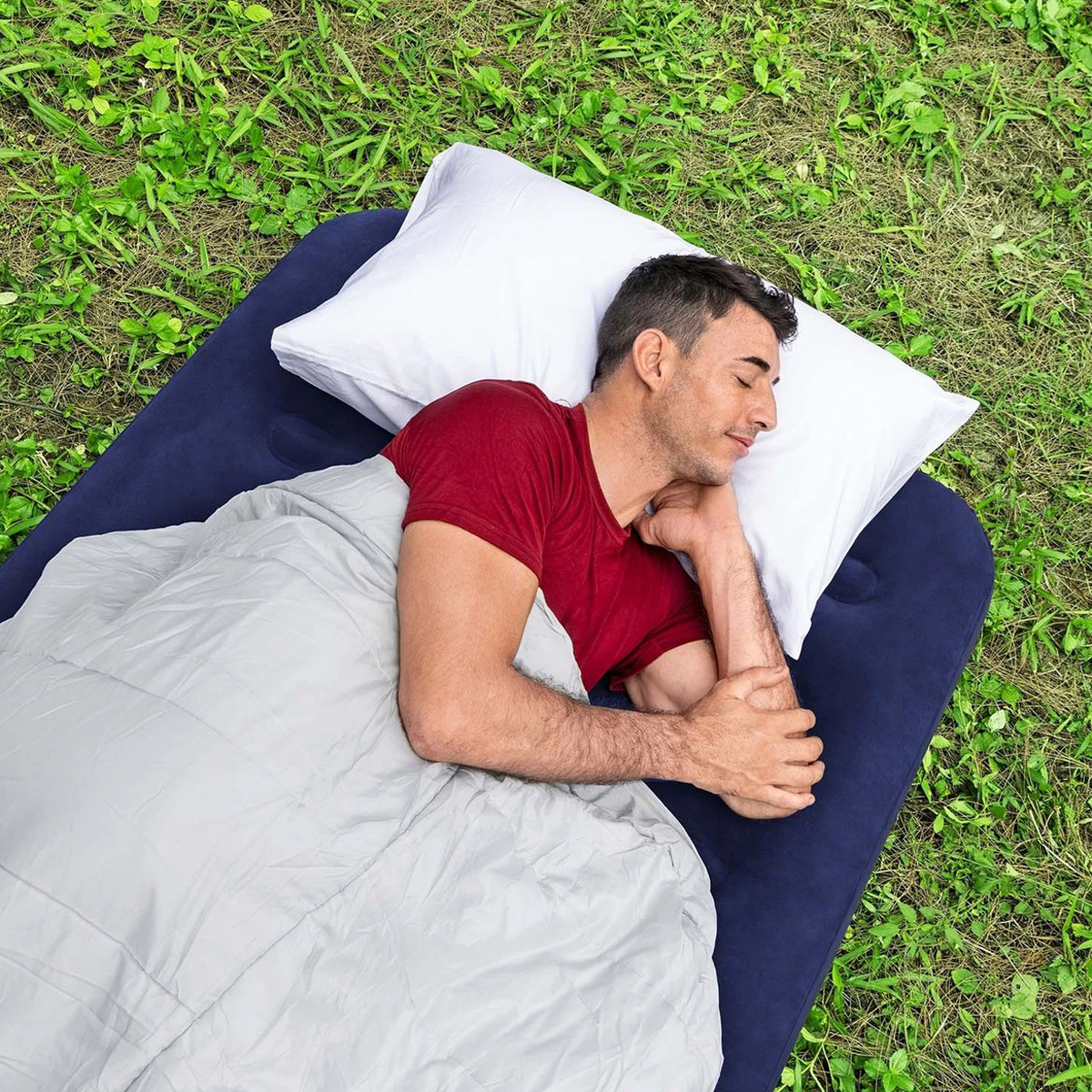 Wirst du demnächst auf einem Festival-Campingplatz zelten? Dann darf dieses komfortable Einzel-Luftbett in deiner Campingausrüstung nicht fehlen! Das Luftbett besteht aus robustem Vinylmaterial. Nach dem Aufblasen hat das Luftbett eine Länge von 188 cm, eine Breite von 99 cm und eine Höhe von 22 cm und ist für den Einzelngebrauch geeignet. Dank der Coil-Beam-Konstruktion und der weichen Velours-Oberfläche bietet dieses Luftbett optimalen Halt und ermöglicht dir einen erholsamen Schlaf. Mit dem Quick-Release-Ventil lässt sich das Luftbett zudem schnell entleeren.