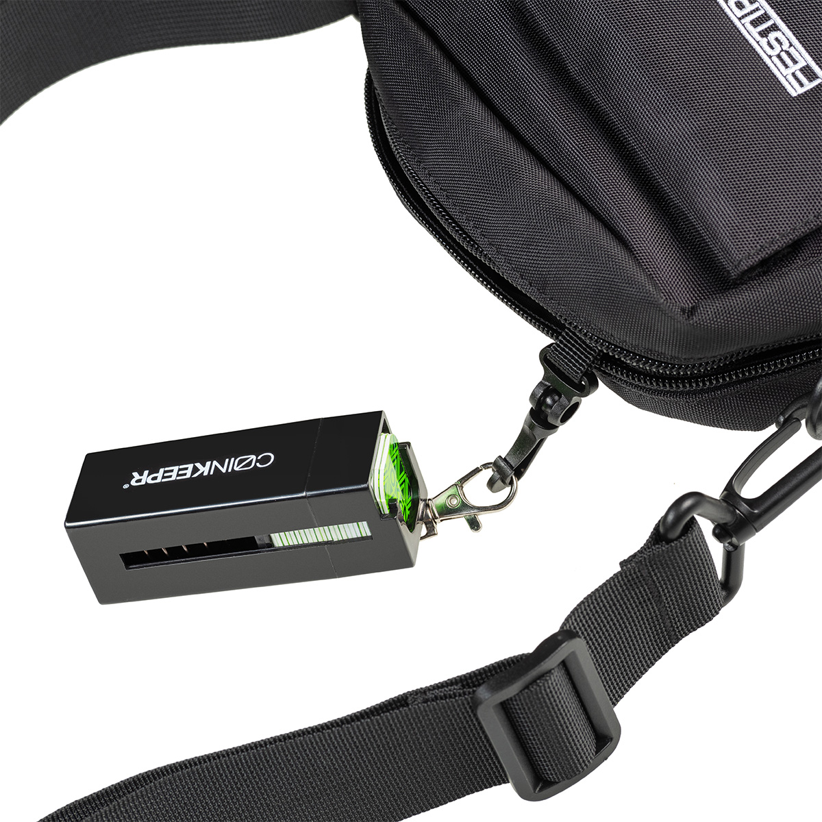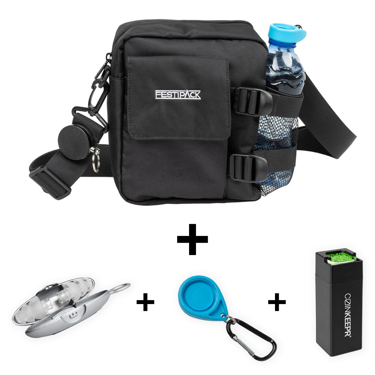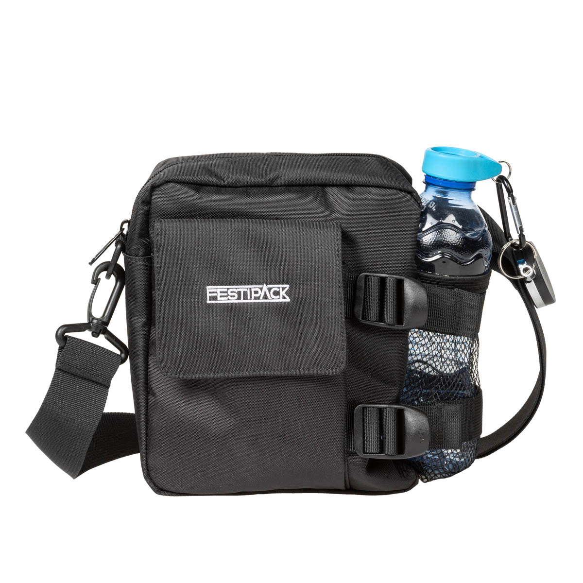 Mit dieser vielseitigen Festipack Umhängetasche bist du bestens für Festivals gerüstet! Die Tasche bietet nicht nur viel Stauraum, sondern hat auch einen integrierten Flaschenhalter an der Vorderseite, so dass du immer die Hände frei hast, um deine Abenteuer voll und ganz zu genießen. Neben dem praktischen Flaschenhalter verfügt diese Festivaltasche über eine universelle Partydop®-Befestigung an einem Rollclip mit Stahldraht, damit du sie nie wieder verlierst. In der Tasche befindet sich auch ein praktischer Coinkeepr® Münzhalter, der an einem speziellen Clip befestigt ist. Die Tasche hat ein großes Hauptfach mit einem kleinen Reißverschlussfach und einer Klettverschlusstasche an der Vorderseite.
