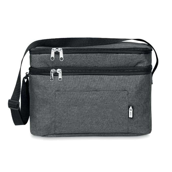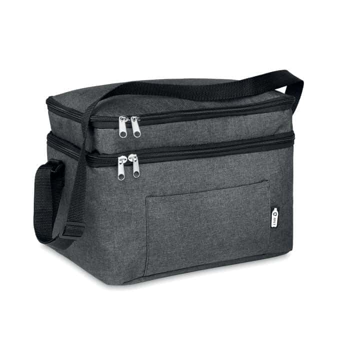 600D RPET Duotone Kühltasche mit 2 Fächern und PEVA-Futter. Das Isoliermaterial besteht aus 0,15 mm PEVA + 3 mm Schaum. Diese Tasche ist ideal für einen Tag am Strand, ein Picknick oder den Urlaub. Mit ihren zwei separaten Fächern können Sie verschiedene Artikel kühl halten und haben einfachen Zugriff auf beide. Stellen Sie ein paar Getränkedosen unten ein und etwas Essen oben drauf, und Sie sind bereit für den Ausflug. In der Tasche ist Platz für bis zu 6 Getränkedosen. Die Tasche verfügt außerdem über eine Vordertasche zur Aufbewahrung kleinerer Gegenstände. Dank des verstellbaren Schulterriemens ist die Kühltasche auch voll beladen leicht zu transportieren.