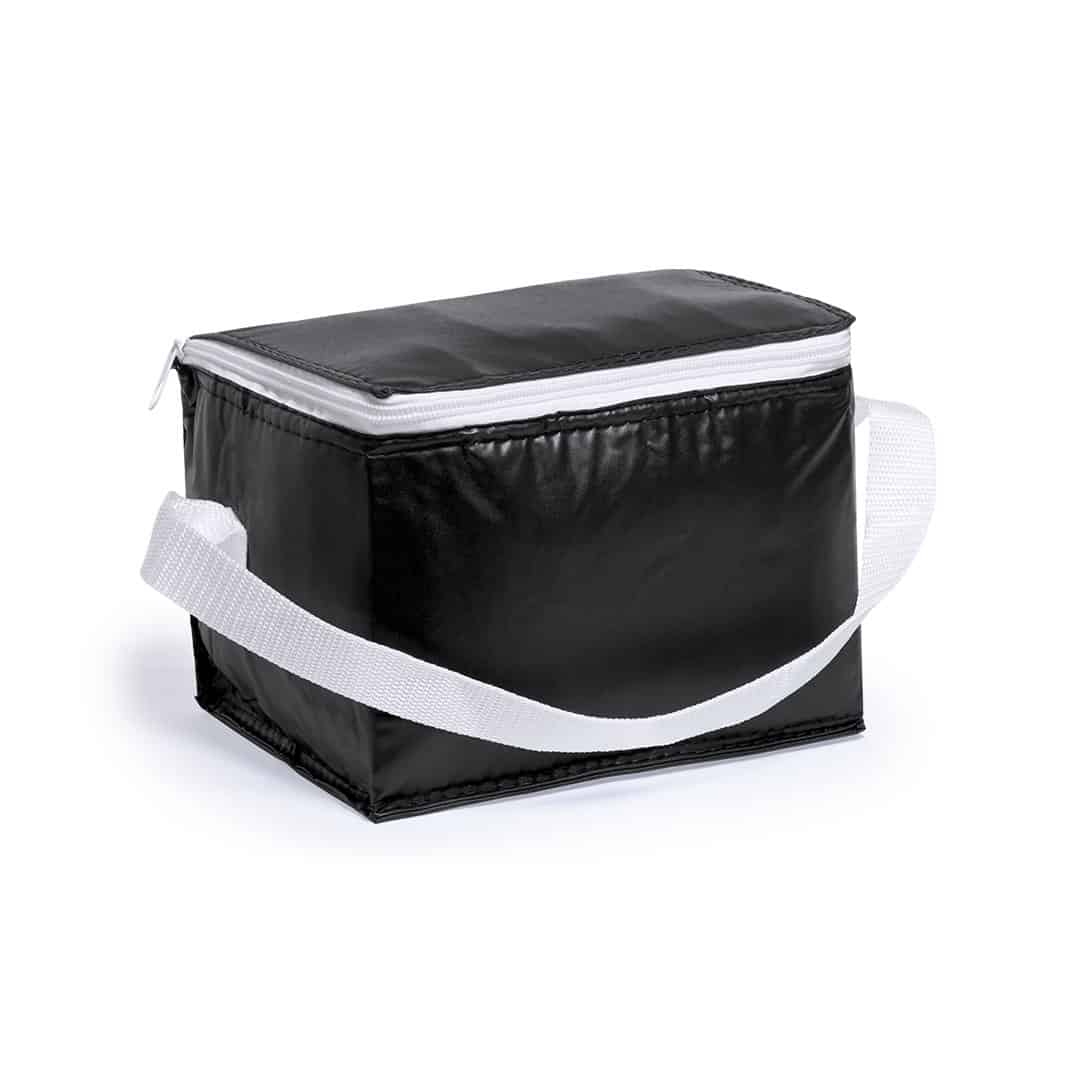 Praktische kompakte Kühltasche, die genau für ein Sixpack Dosen passt. Die Kühltasche besteht aus robustem PVC und ist in den Farben Blau und Schwarz erhältlich. Die Tasche hat eine isothermische Innenseite aus Aluminium und einen weißen Reißverschluss mit passender weißer Paspelierung am Rand. Ideale Tasche mit Tragehenkel für einen Tag auswärts an einem warmen Tag oder für den Strandbesuch. Nichts ist besser, den ganzen Tag über köstlich kühle Getränke genießen zu können.