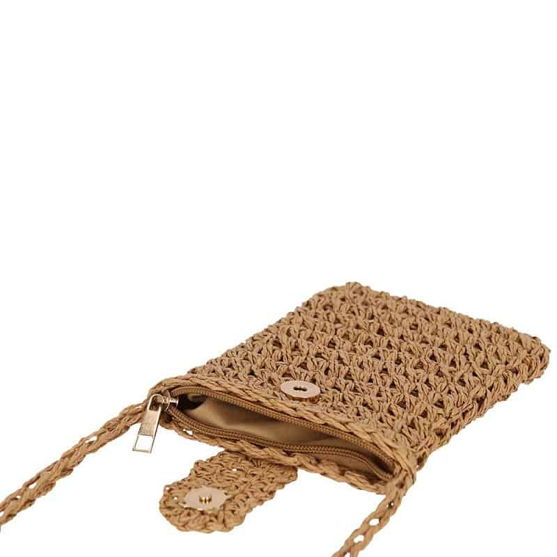 Runde deine Festival-Outfit mit dieser süßen Telefon-Tasche von Sarlini ab! Die Tasche hat ein Innenfutter aus Polyester und die Außenseite ist aus geflochtenem Papier hergestellt. In der Tasche kannst du problemlos dein Telefon und wichtige Kleinigkeiten aufbewahren. Mit dem Reißverschluss wird die Tasche verschlossen und deine Sachen gut geschützt. Mit dieser praktisches Telefon-Tasche hast du deine wichtigen Dinge immer griffbereit!