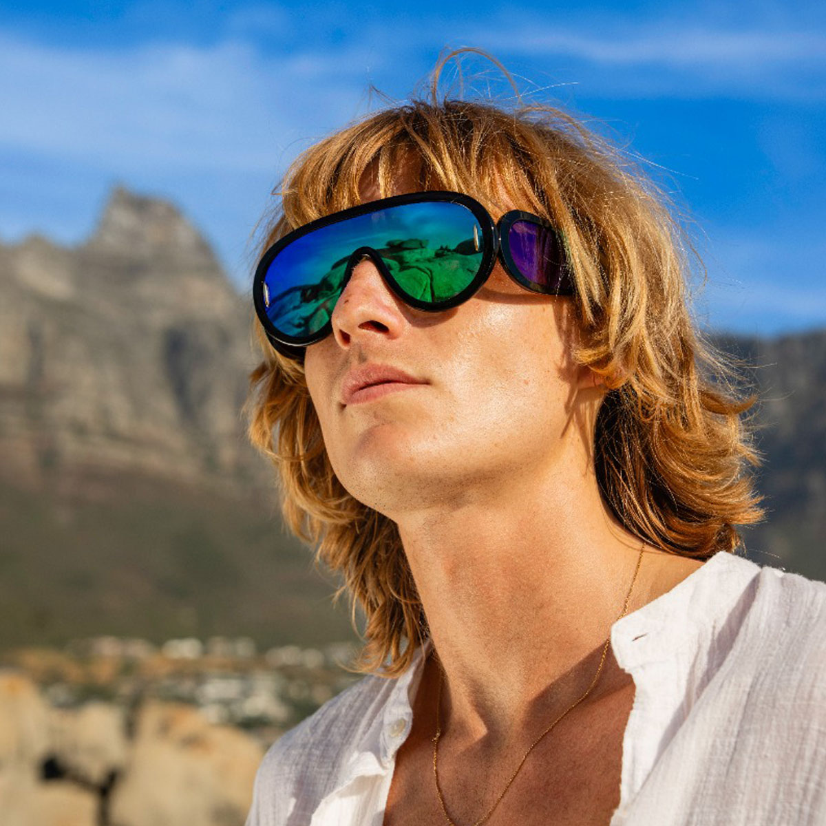 Setze ein kraftvolles Stil-Statement mit dieser modernen Interpretation des klassischen Pilotenmodells. Die übergroße, nahtlos gebogene Form erinnert an den ikonischen Pilotenstil, erhält jedoch einen futuristischen Touch. Das tiefschwarze Gestell und die runde, geschlossene Glasform verleihen dieser Sonnenbrille einen markanten und sportlichen Charakter. Die grünen Gläser sind nicht nur stilvoll, sondern auch funktional: Sie bieten UV400-Schutz (Kategorie 3) gegen schädliche UVA- und UVB-Strahlen. Perfekt für sonnige Festivaltage, Städtetrips oder einfach jede Gelegenheit, bei der du auffallen möchtest. Die Sonnenbrille ist mit grünen Seitengläsern für zusätzlichen Sonnenschutz und einen futuristischen Look ausgestattet. Mit dezenten goldenen Details und einem bequemen Sitz ist diese Sonnenbrille die ideale Mischung aus Retro und progressivem Design. Ob du nun die Tanzfläche dominierst oder einen Tagesausflug machst – diese Brille hebt deinen Look aufs nächste Level.