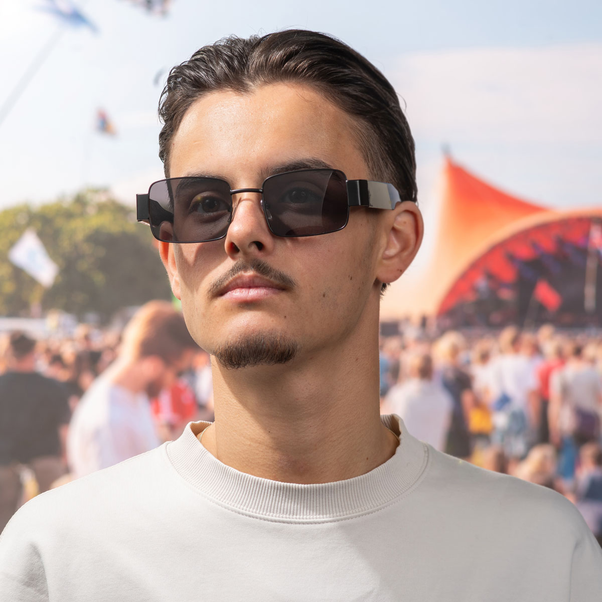 Bist du bereit, bei dem nächsten Festival die Show zu stehlen? Dann ist diese trendige Festival-Sonnenbrille genau das, was du brauchst! Mit ihrer zeitlosen rechteckigen Form passt diese Sonnenbrille mühelos zu verschiedenen Gesichtsformen und verleiht deinem Festivaloutfit ein kantiges Element. Diese Sonnenbrille ist gemacht, um gesehen zu werden. Das Gestell hat ein trendiges Design, das perfekt zur Festivalstimmung passt. Egal, ob du dich für einen Boho-Chic-Look oder eine trendige urbane Stimmung entscheidest, diese Sonnenbrille ist ein Must-Have-Accessoire, das dein Outfit aufwertet. Mit ihrer einzigartigen Form und verspielten Details ist diese Sonnenbrille ein echter Hingucker. Neben ihrem trendigen Aussehen bietet die Festival-Sonnenbrille auch hervorragenden Schutz für deine Augen. Die Gläser sind mit einer UV400-Beschichtung versehen, die deine Augen vor schädlichen UVA- und UVB-Strahlen schützt. So kannst du unbesorgt die Festivalatmosphäre genießen, in dem Wissen, dass deine Augen gut geschützt sind.