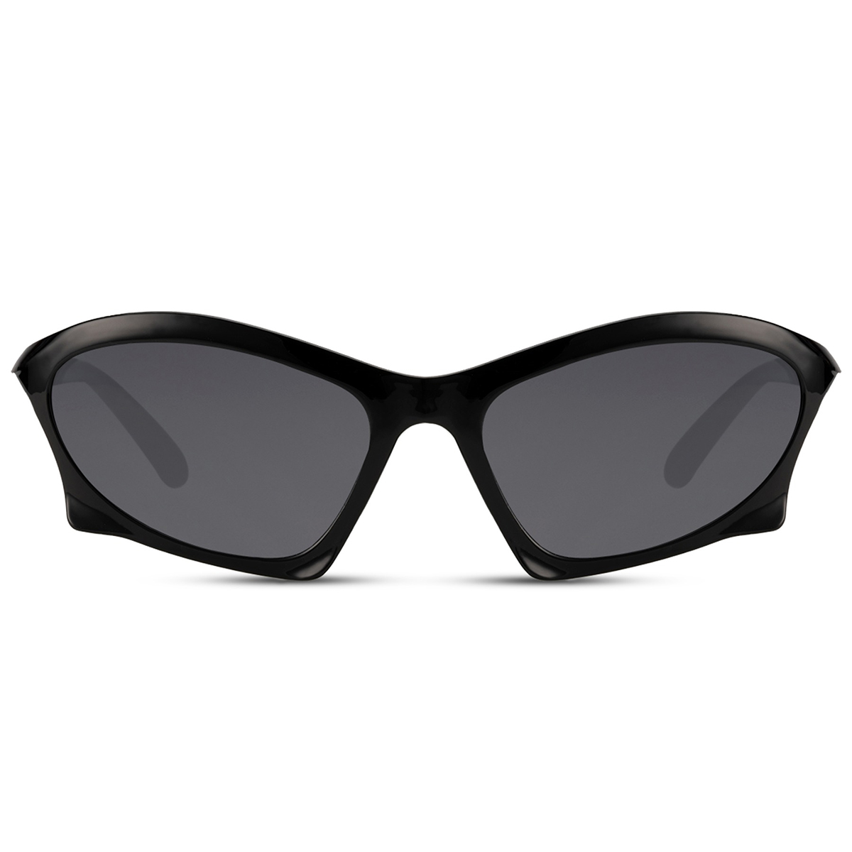 Setzen Sie ein kraftvolles Statement mit dieser schwarzen Sonnenbrille mit glänzendem, komplett umrandetem Rahmen. Das robuste Design und die tiefschwarze Farbe verleihen dieser Brille einen modernen, markanten Look – perfekt für alle, die es minimalistisch, aber mit Wirkung mögen. Die Brille besteht vollständig aus hochwertigem Polycarbonat, was einen stabilen, aber dennoch komfortablen Sitz garantiert. Die schwarzen Gläser mit UV400-Schutz (Kategorie 3) bieten hervorragenden Schutz vor grellem Sonnenlicht und schädlicher Strahlung, sodass Sie stilvoll und sicher die Sonne genießen können. Ob in der Stadt oder auf einem Festival – diese Sonnenbrille verleiht jedem Outfit sofort Charakter.