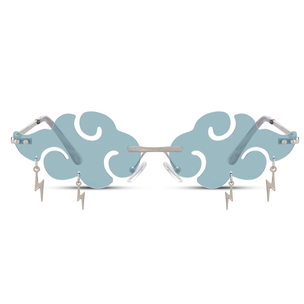 Vervollständige dein Festival-Outfit mit dieser Sonnenbrille im Regenwolken-Design! Die Brille hat blaue Kunststoffgläser in Form kleiner Regenwolken mit Blitzmotiven. Mit diesem trendigen Design fällst du garantiert unter allen Feiernden auf und verleihst deinem Look eine spielerische Note. Das randlose Gestell der Sonnenbrille sorgt für ein leichtes und angenehmes Tragegefühl, während die UV400-Beschichtung (Kategorie 2) in den Gläsern deine Augen vor schädlichen Sonnenstrahlen schützt. Egal ob du einen Tag am Meer verbringst, dein Sommeroutfit aufpeppen oder auf deinem Lieblingsfestival abfeiern möchtest, diese Sonnenbrille ist dafür das perfekte Accessoire.Das leichte Design sorgt für angenehmen Tragekomfort den ganzen Tag über.Mit dieser trendigen Wolken- & Blitz-Sonnenbrille rundest du dein Festival-Outfit perfekt ab!