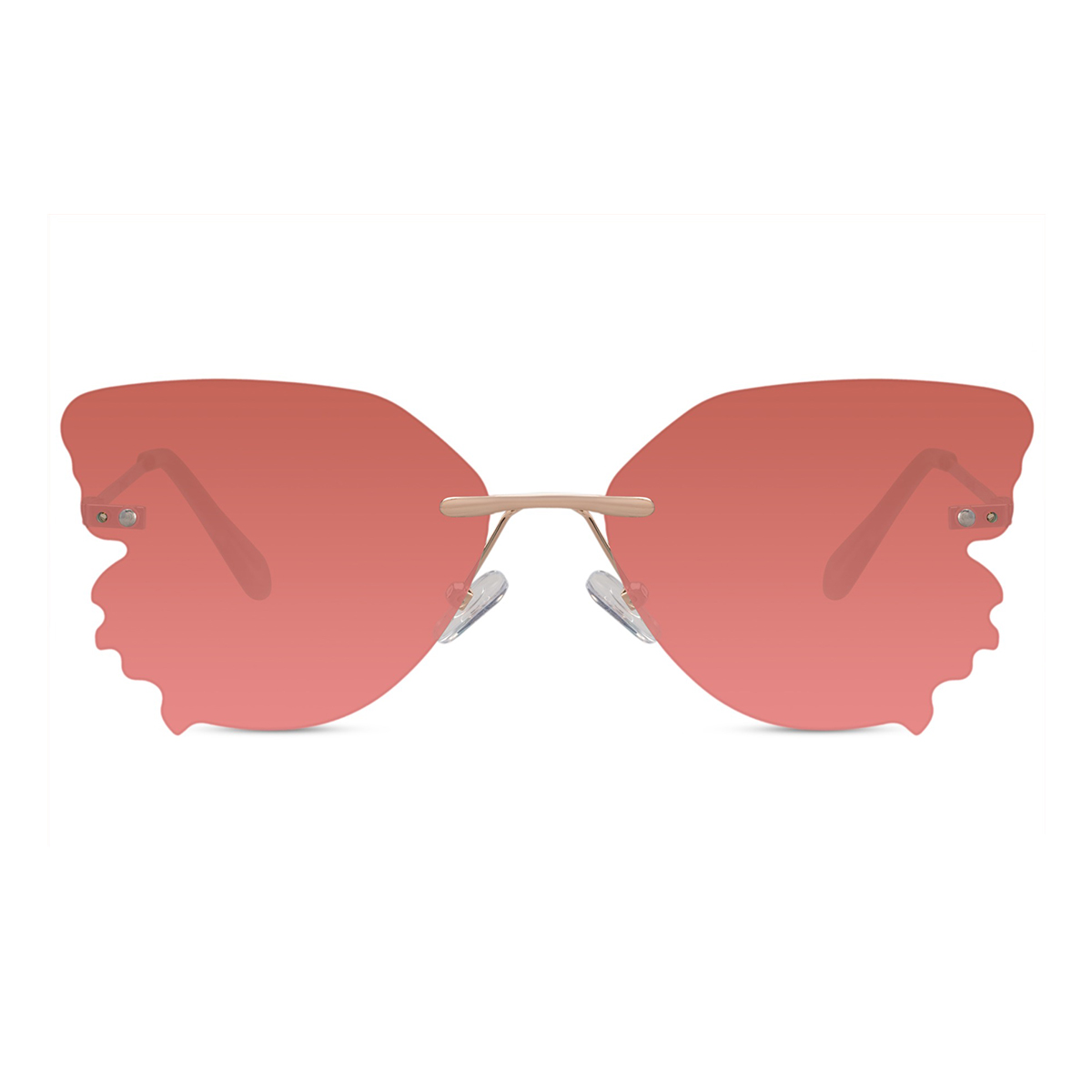 Mit dieser goldenen Sonnenbrille in Schmetterlingsform bist du bereit zu strahlen. Elegant und eigenwillig – genau das, was du für einen sonnigen Festivaltag voller Musik, Farbe und Freiheit suchst. Die anmutige Form in Kombination mit dem randlosen Gestell macht diese Brille zu einem echten Blickfang. Die dunkelrosa Gläser bieten UV400-Schutz (Kategorie 2), sodass deine Augen bestens vor schädlicher UVA- und UVB-Strahlung geschützt sind. Ob tanzend in der Sonne oder entspannt im Gras: Du siehst fantastisch aus und bleibst dabei geschützt. Das randlose Gestell besteht aus Edelstahl, die Gläser aus robustem Polycarbonat – damit ist die Brille für eine lange Lebensdauer gemacht. Egal, ob du dich für einen Boho-Look oder etwas Futuristisches entscheidest: Diese Brille verleiht deinem Outfit garantiert eine einzigartige Note. Perfekt für alle, die den Mut haben, aufzufallen!