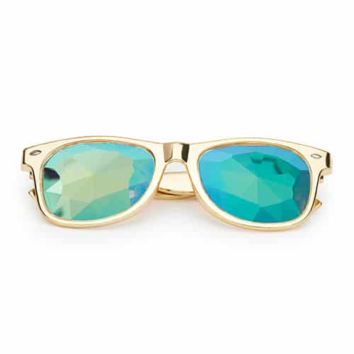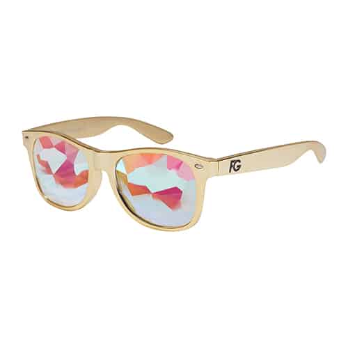 Diese Kaleidoskop-Brille versetzt dich in die ultimative Traumwelt und bietet dir einen noch krasseren Trip-Effekt als die normale Spacebrille! Dieses Modell hat klassischerweise einen goldenen Rahmen und einen großen Blumeneffekt.