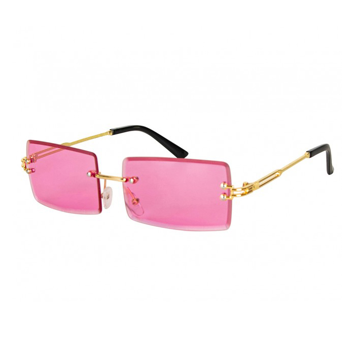 Mach dich bereit, bei deiner Lieblingsparty zu strahlen und vervollständige dein Festival-Outfit mit dieser lustigen rechteckigen Sonnenbrille mit rosa Gläsern! Die Brille hat rosa Kunststoffgläser und ein vollständig randloses Gestell, was ihr einen eleganten und modernen Touch verleiht. Mit ihrer rechteckigen Form und dem gold-schwarzen Rahmen fällst du garantiert unter den Feiernden auf. Diese Sonnenbrille verleiht jedem Outfit einen Hauch von Stil.
