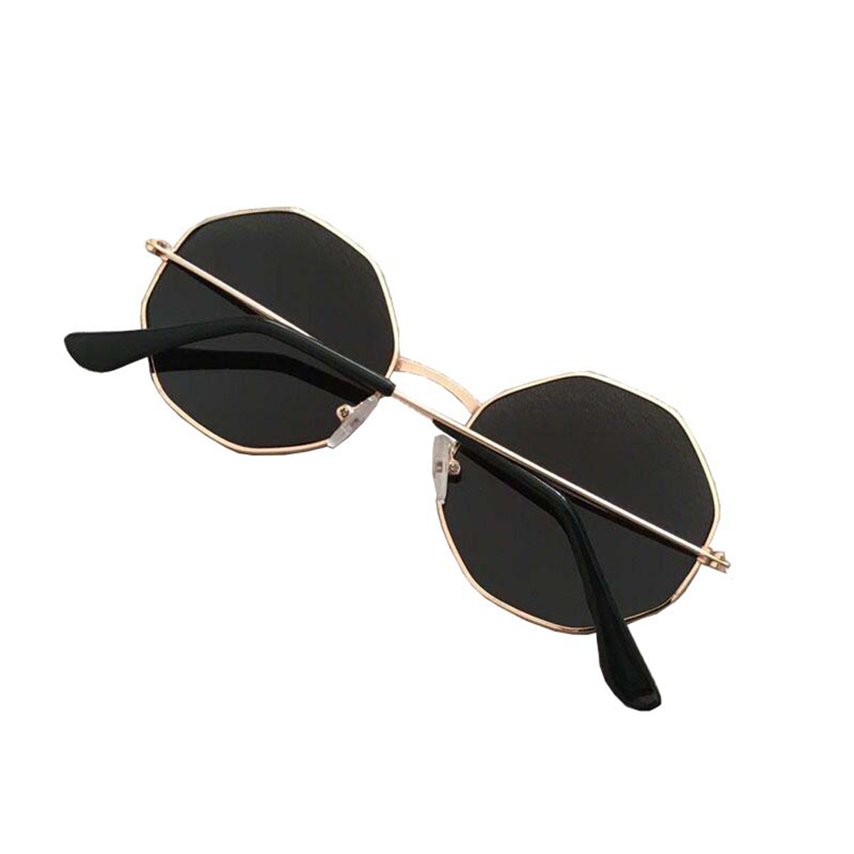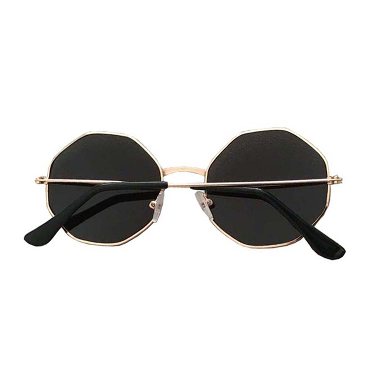 Sonnenbrille mit runden Ecken in Gold mit schwarzen Gläsern.