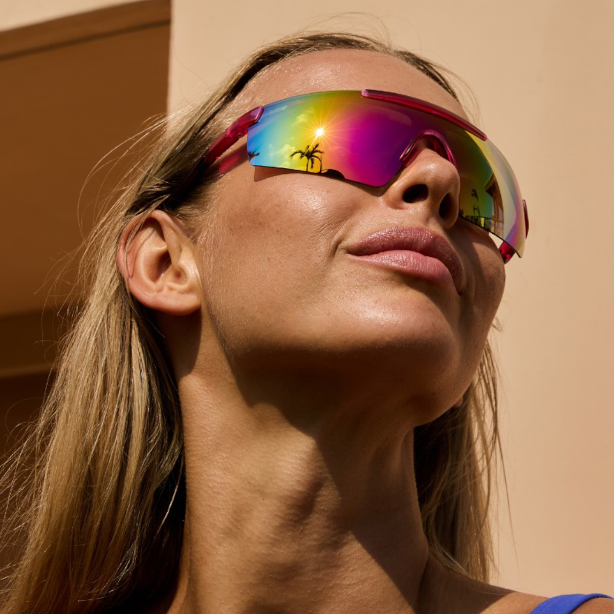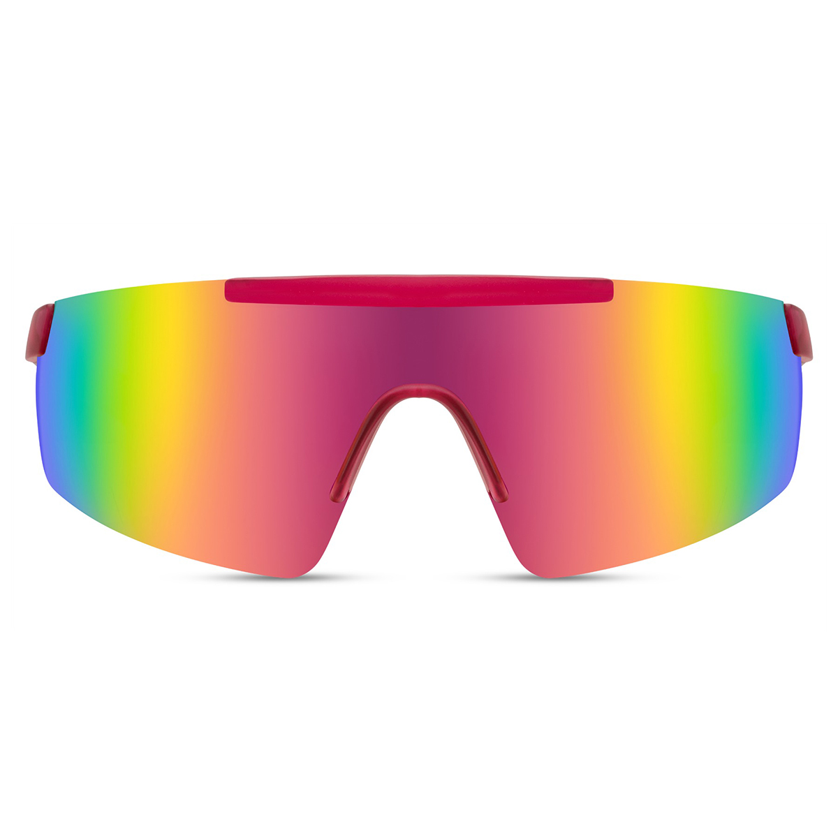Erlebe stilvollen Sonnenschutz mit unserer pinkfarbenen Sportsonnenbrille mit halb randlosem Gestell und multicolor verspiegelten Gläsern. Diese Sonnenbrille vereint Stil mit praktischer Funktionalität. Die verspiegelten Gläser runden die Brille perfekt ab, reduzieren gleichzeitig Blendungen und fördern eine klare Sicht, selbst bei starker Sonneneinstrahlung. Diese Sonnenbrille wurde für maximalen Tragekomfort entwickelt – das spürst du in jedem Detail. Das leichte Gestell sorgt dafür, dass du sie mühelos tragen kannst, während die matten pinkfarbenen Bügel einen sicheren Halt bieten, unabhängig von der Form deines Gesichts. So musst du dir keine Sorgen machen, dass die Brille verrutscht. Egal, ob du deinem Stil ein Upgrade verleihen, deine Augen schützen oder einfach deinem Look einen Hauch Selbstbewusstsein hinzufügen möchtest – unsere pinkfarbene Sportsonnenbrille mit halb randlosem Gestell und multicolor verspiegelten Gläsern ist die perfekte Wahl.