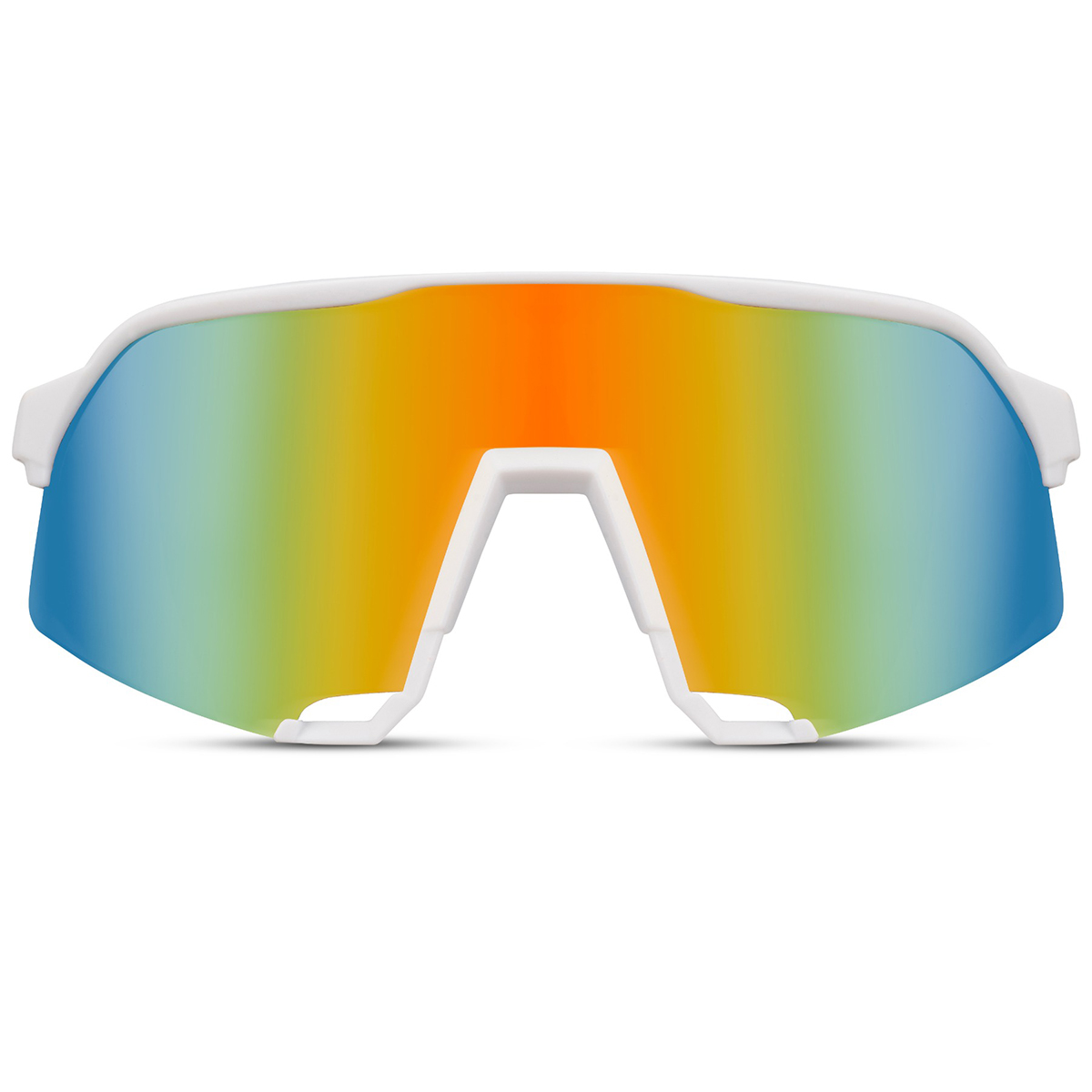 Erleben Sie stilvollen Sonnenschutz mit unserer weißen Sportsonnenbrille mit halb randlosem Gestell und multicolor verspiegelten Gläsern. Diese Sonnenbrille vereint Stil mit praktischer Funktionalität. Die verspiegelten Gläser runden das Design perfekt ab, während sie gleichzeitig Blendungen reduzieren und für klare Sicht sorgen – selbst bei grellem Sonnenlicht. Diese Sonnenbrille ist auf Tragekomfort ausgelegt und das spürt man in jedem Detail. Das leichte, halb randlose Gestell sorgt für müheloses Tragen, während die weißen Bügel einen festen Sitz bieten, unabhängig von der Form Ihres Gesichts. So müssen Sie sich keine Sorgen machen, dass die Brille verrutscht. Ob Sie Ihrem Stil einen Schub geben, Ihre Augen schützen oder Ihrem Look einfach mehr Selbstvertrauen verleihen möchten – unsere weiße Sportsonnenbrille mit halb randlosem Gestell und multicolor verspiegelten Gläsern ist die perfekte Wahl.