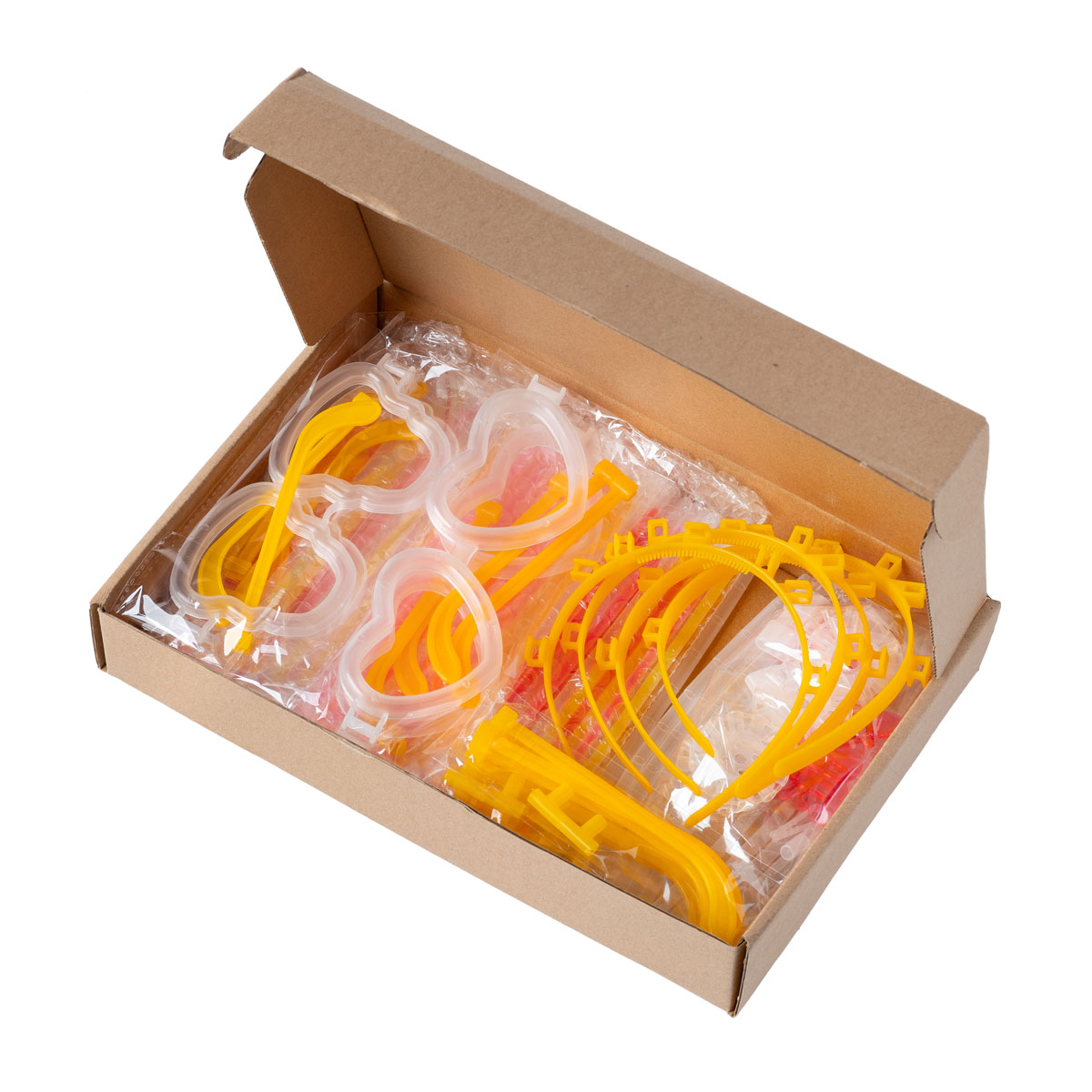 Mit diesem bunten Glowsticks-Partyset machst du deinen Geburtstag, Kinderparty, Themenparty usw. noch festlicher! Dieses komplette Partyset enthält extra viele Glowsticks in verschiedenen Farben. Brich die Stäbe und forme mit dem mitgelieferten Zubehör und den Befestigungsteilen die lustigsten leuchtenden Formen. Von Brillen über Haarbänder und noch vieles mehr, alles ist möglich. Mit einem einfachen Knick der Glowsticks aktivierst du den leuchtenden Effekt. Die Beleuchtung sorgt für einen bunten und auffälligen Akzent auf jeder Party. Mit diesem Glowsticks-Partyset wird jede Party ein Erfolg!