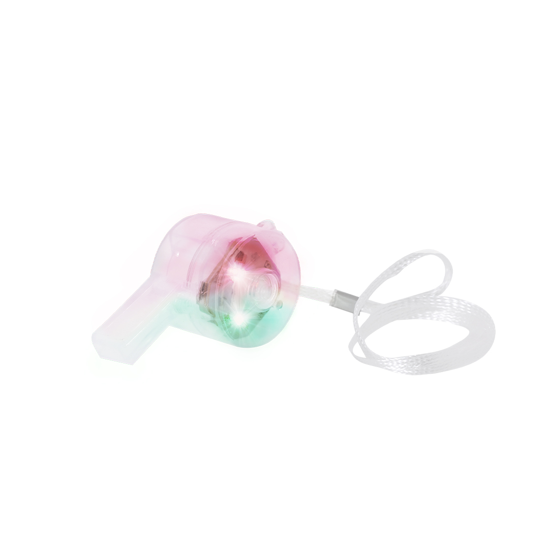 Kombinieren Sie Licht und Klang mit dieser festlichen, leuchtenden Trillerpfeife! Das weiße Gehäuse enthält mehrfarbige LEDs, die in drei verschiedenen Modi aufleuchten und so überall einen auffälligen Effekt erzielen. Dank des mitgelieferten Bands können Sie die Pfeife leicht um den Hals hängen – ideal für Partys, Konzerte, Sportveranstaltungen oder Festivals.