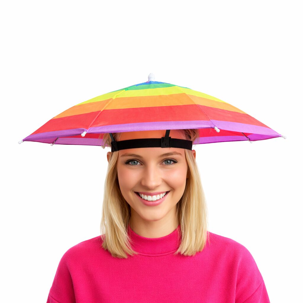 Kopfschirm mit elastischem Band. Schützt dich vor Regen oder Sonne. Praktisch für jede Party oder Festival!