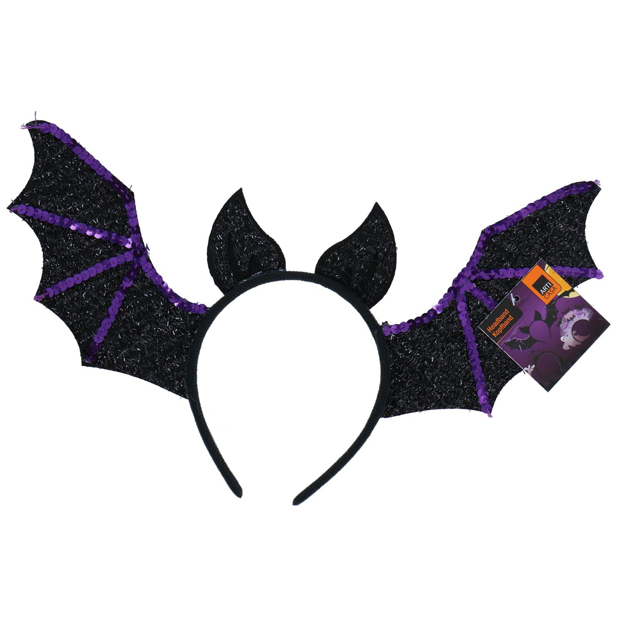 Verleihen Sie Ihrem Halloween-Look eine verspielte, aber gruselige Note mit diesem Halloween-Fledermaus-Haarreif! Dieses einzigartige Haarband ist mit funkelnden schwarzen Fledermausflügeln versehen und mit lilafarbenen Pailletten, schwarzen Steinchen und kleinen Fledermausohren für einen auffälligen Auftritt veredelt. Das Design vereint einen festlichen Glitzer-Look mit einem typischen Halloween-Thema und macht das Accessoire perfekt für Kinder und Erwachsene. Der Halloween-Haarreif besteht aus robustem, aber flexiblem Material, sodass er gut sitzt, ohne zu drücken. Dank seines geringen Gewichts ist er angenehm zu tragen – den ganzen Abend lang, ob bei Partys, beim Trick-or-Treat oder bei einem Halloween-Schulfest. Mit seinen auffälligen Flügeln und Glitzerelementen lässt sich das Haarband auch toll mit einem Fledermaus- oder Hexenkostüm kombinieren – für einen besonders gruseligen Look. Trauen Sie sich zu glänzen und zu gruseln mit diesem einzigartigen Fledermaus-Haarreif!