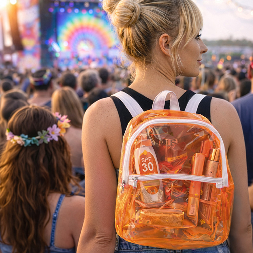 Dieser neonorange, transparente Rucksack ist die perfekte Kombination aus Stil und Funktionalität für Festivals, Events und Feiertage. Mit seiner auffälligen Farbe und dem transparenten Design bist du garantiert sichtbar und bestens für einen festlichen Tag gerüstet.
