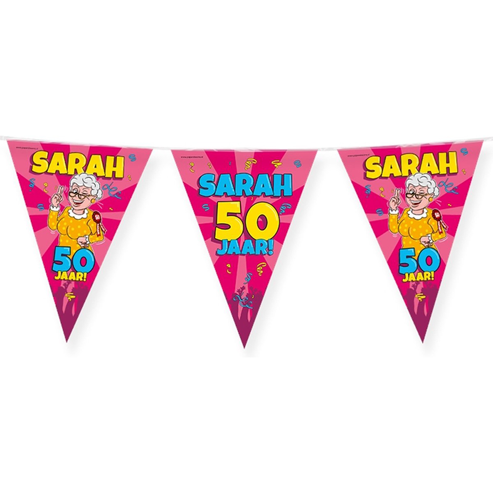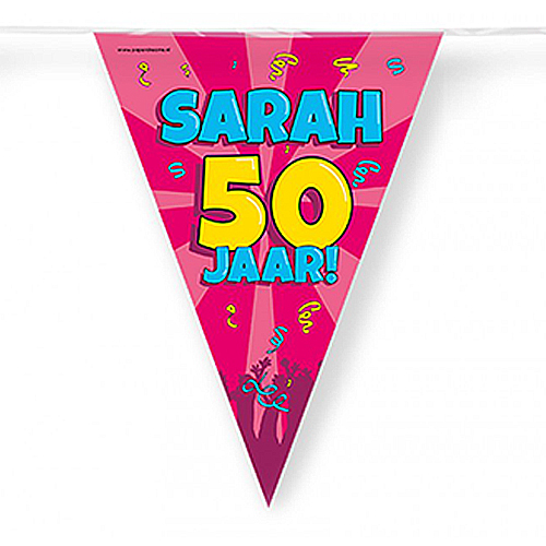 Dein 50. Geburtstag ist ein wichtiger Meilenstein, den du nie vergessen willst. Mit dieser farbenfrohen Girlande mit Sarah-Motiv fügst du diesem besonderen Tag eine Prise Feierlichkeit hinzu. Die bunte Girlande ist aus hochwertigem Folienmaterial gefertigt und 10 Meter lang. Du kannst die Girlande leicht aufhängen, indem du die Enden irgendwo festbindest. So kannst du die Wimpel zum Beispiel an Wänden, Decken, Tischen oder überall dort aufhängen, wo du möchtest. So wird der Raum noch festlicher. Mit dieser festlichen Girlande für das Geburtstagskind Sarah machst du diesen Tag noch besonderer. Hip Hip Hurra!