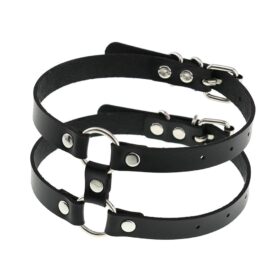 Zeig dich und mach dich hörbar mit diesem auffälligen doppelten Choker aus schwarzem Kunstleder. Die silberfarbenen Nieten und Metallringe sorgen für einen edgy Look, der perfekt zur rauen Energie der Techno-Szene, den bunten Vibes von Pride oder einer durchgetanzten Rave-Nacht passt. Dank des verstellbaren Schnallenverschlusses kannst du ihn genau so tragen, wie du möchtest: von eng und dominant bis locker und lässig. Bereit, die Nacht zu erobern? Dieser Choker verleiht deinem Look eine ungefilterte Portion Attitüde.